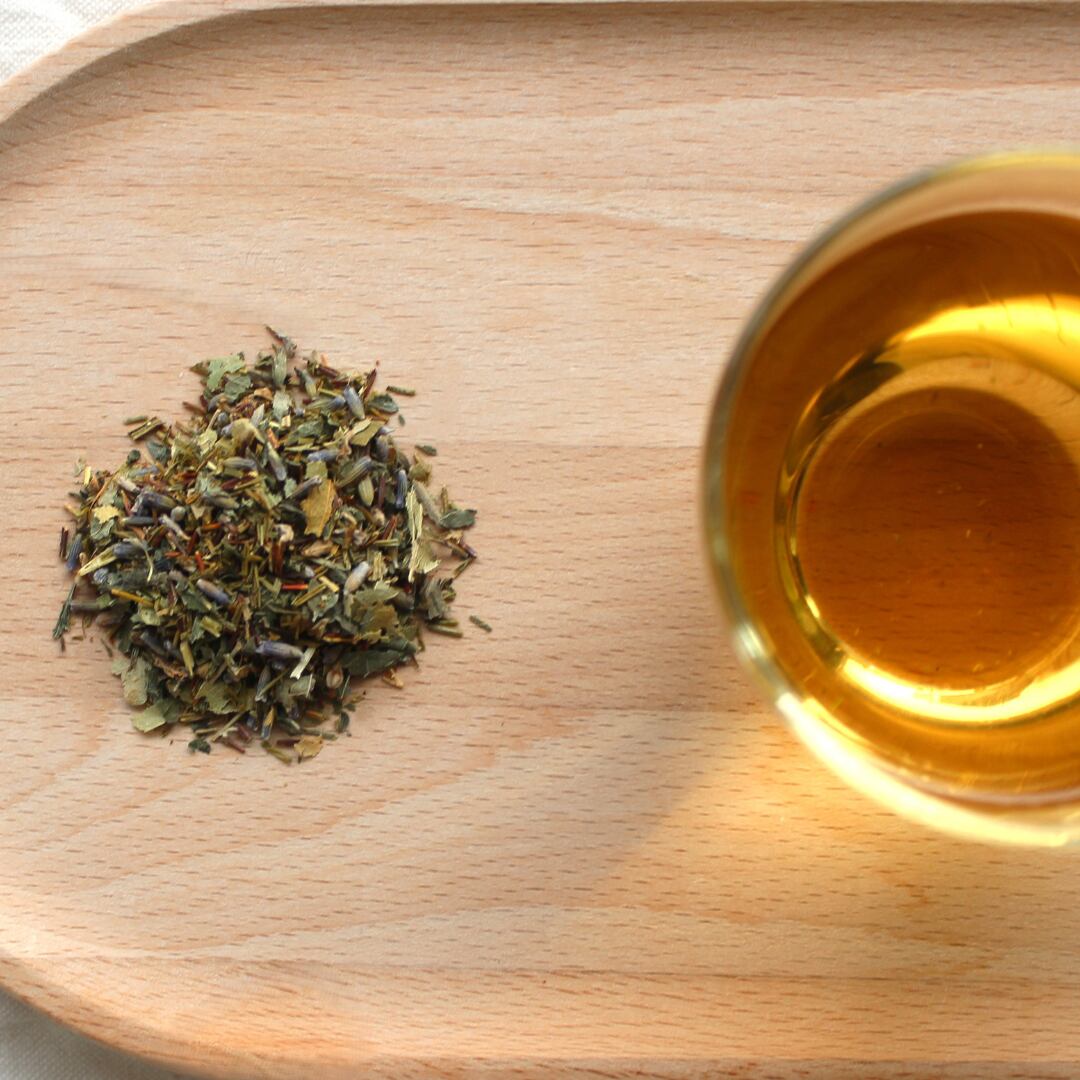 心身を落ち着かせて安眠へ導くリンデンフラワーやレモンバーム、そしてふんわり優しく香るラベンダーもブレンド。