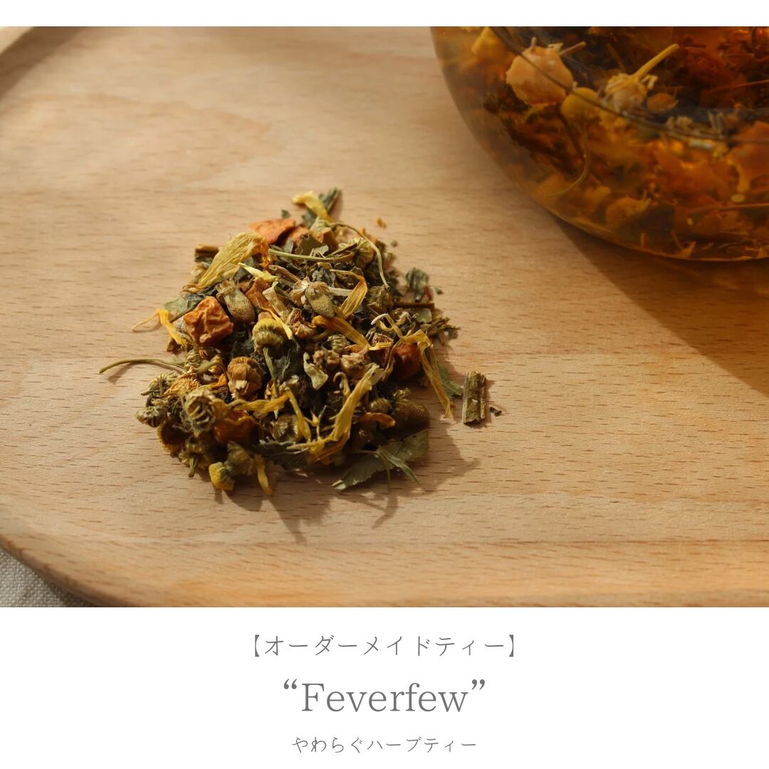 そんなフィーバーフューと、高ぶった神経をおだやかに鎮めるリンデンフラワー、カモマイルジャーマン、レモンバーム、そしてほのかに甘くフルーティーなアップルをブレンドしました。